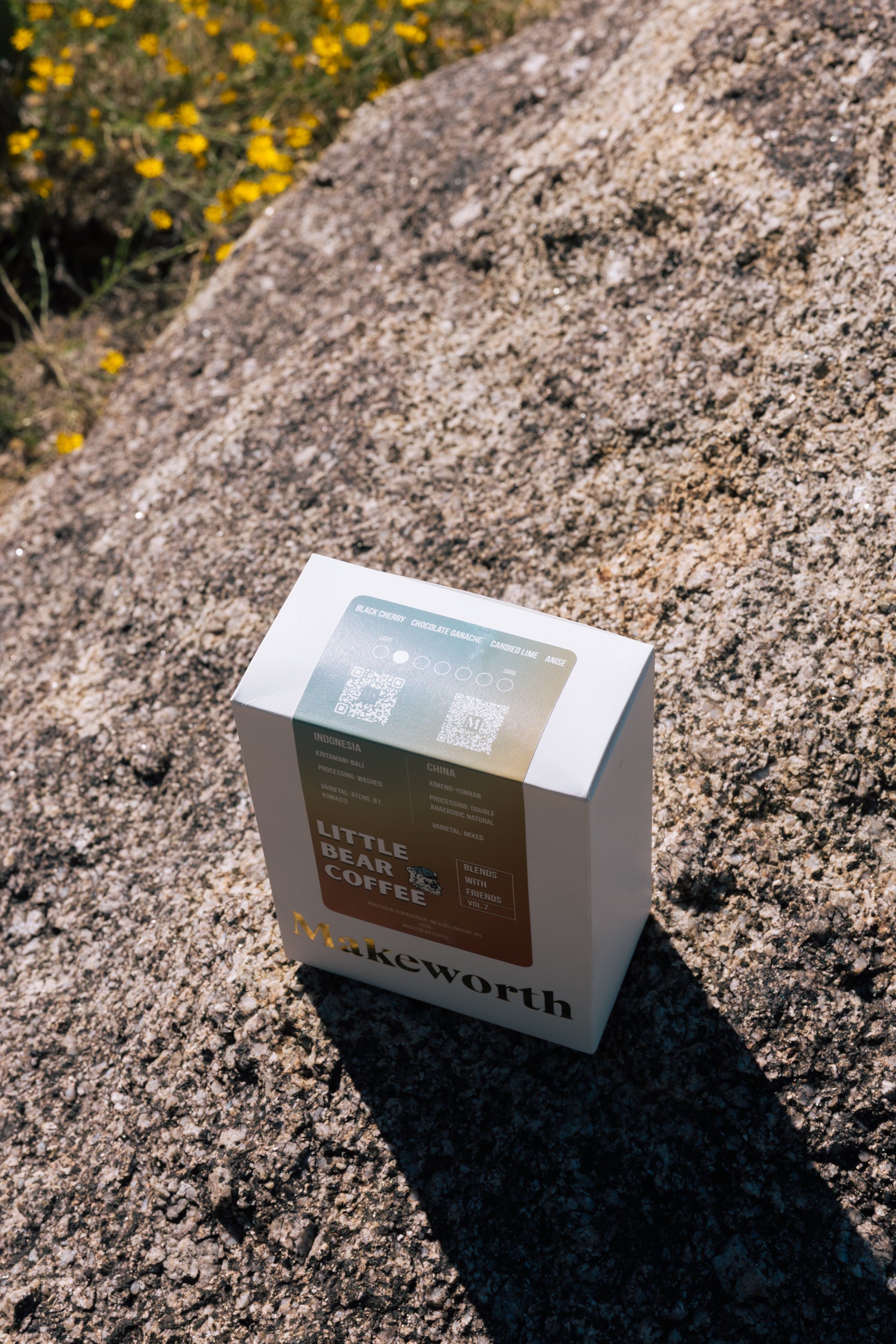 The blend is 50% an Anaerobic Natural coffee from Yunnan, China roasted by Makeworth and 50% a Washed coffee from Bali, Indonesia roasted by us!